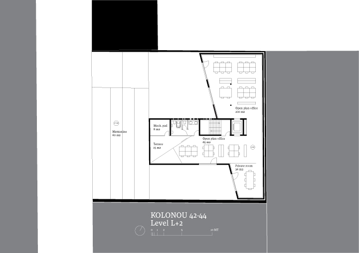 The three existing listed buildings are currently unoccupied. No longer suitable for private housing, they will be rehabilitated as offices buildings. Thanks to its vicinity to Karaiskaki Square and a metro station, the new complex with 1500 square meters will become an attractive spot and will offer a qualitative working environment with two protected courtyards and a cafeteria in the ground floor.
