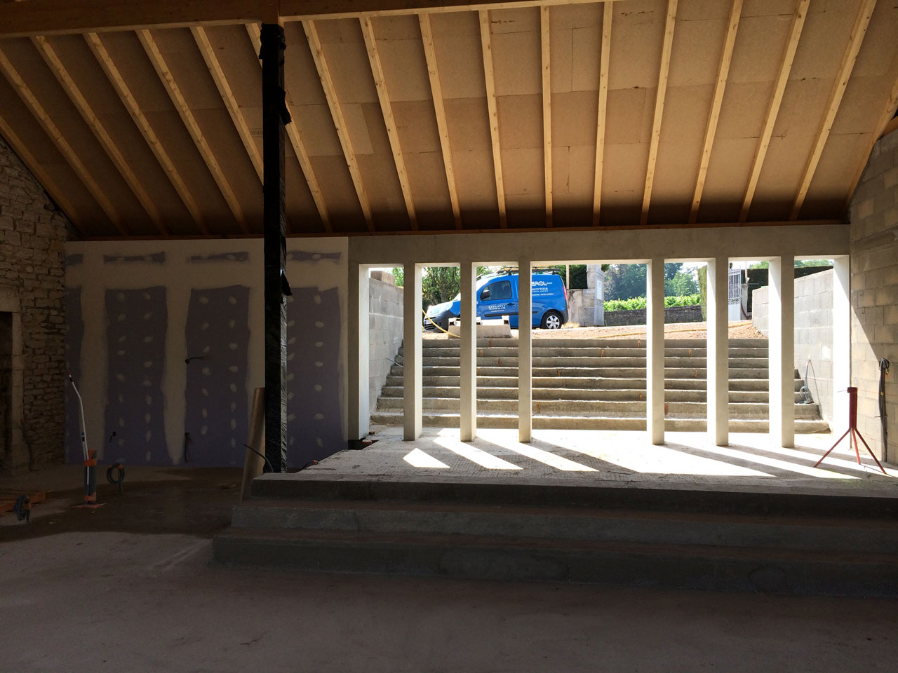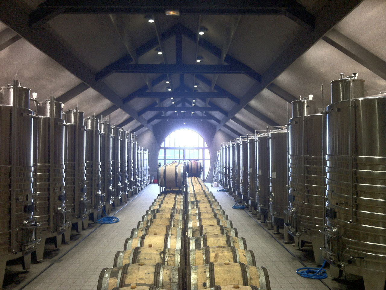 Le projet applique le principe d’organisation intérieure d’une cuverie et d’une cave d’élevage pour les rouges sur deux niveaux, d’une cuverie des blancs sur un niveau, placées de part et d’autre d’un nouvel espace central d’accès et de réception, dans le respect des volumes donnés.